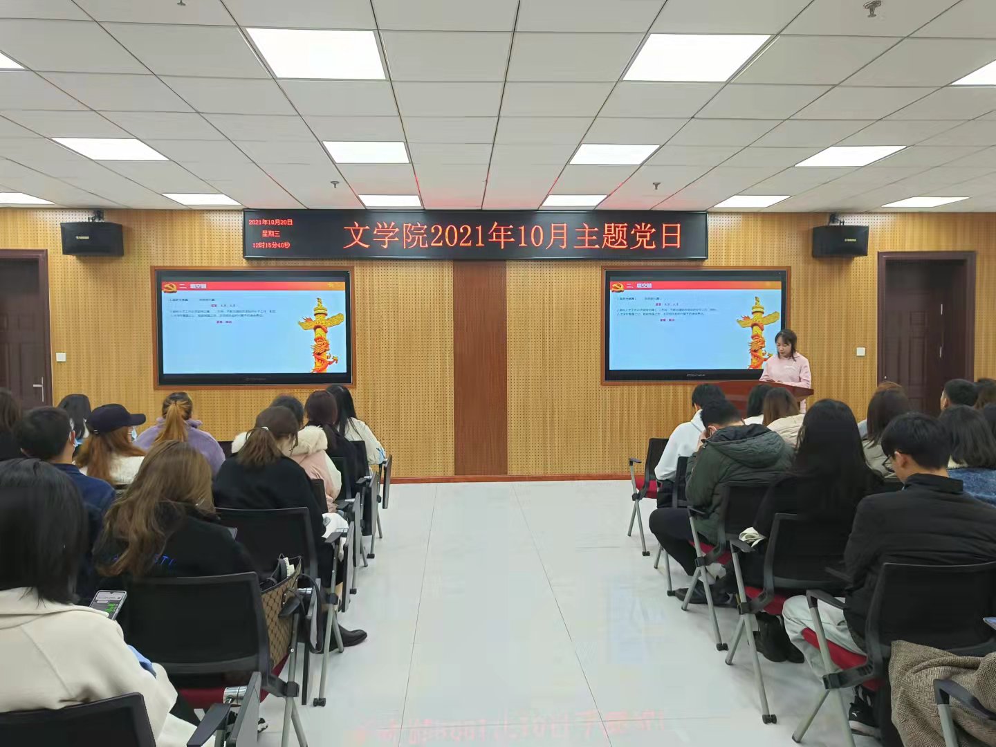 长春理工大学文学院于2021年10月20日12:00在文法楼810教室组织开展了以“强化思想政治 加快人才建设”为主题的10月主题党日活动,文学院全体学生党员参加了本次会议。本次活动分为理论学习、视频学习、知识竞答三个环节。